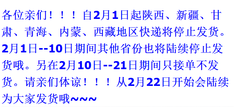 4、保证以最快的速度把货物发出去,辛勤的小二会每天跟进各订单物流信息,当快递不给力时我们竭诚为您解决!