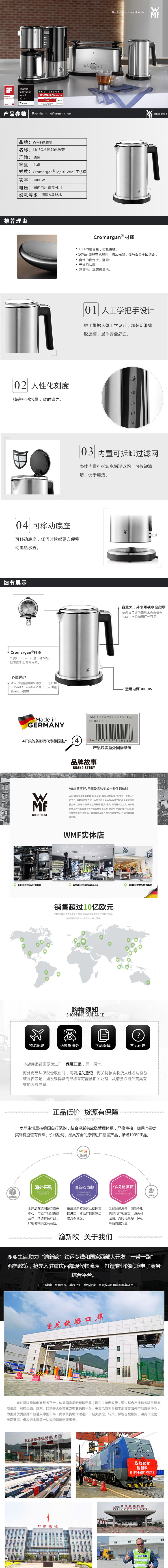 • 德国WMF 0413060011 福腾宝 Lineo不锈钢标准版电热水壶1.6L