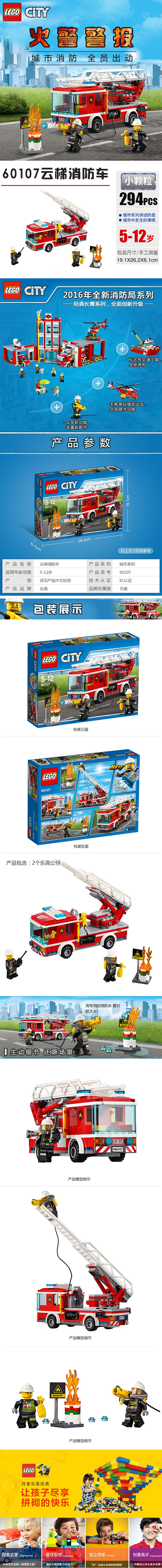 • 乐高 城市系列 City云梯消防车 益智儿童玩具 男孩拼插积木 60107